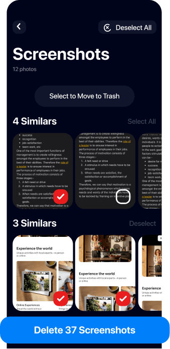 We find similar screenshots for you, so that you can easily clean out unnecessary ones!