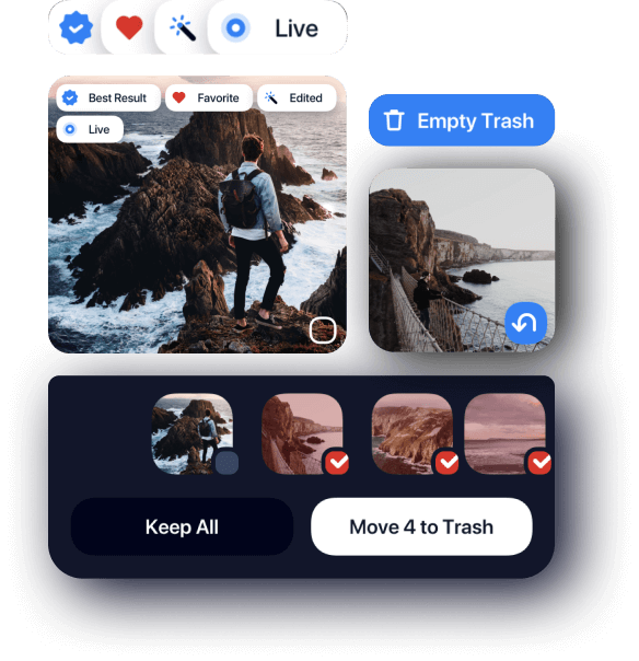 Cleanup finds the best photo in a similar bunch. If you choose to, you can still review all photos before moving to trash.
